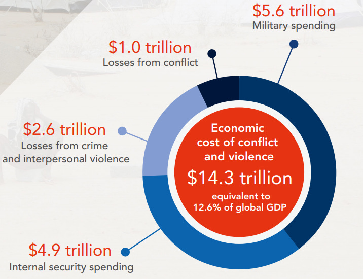 Global military spending alone is more than $2.5 trillion per year. Half of that is spent by the US.